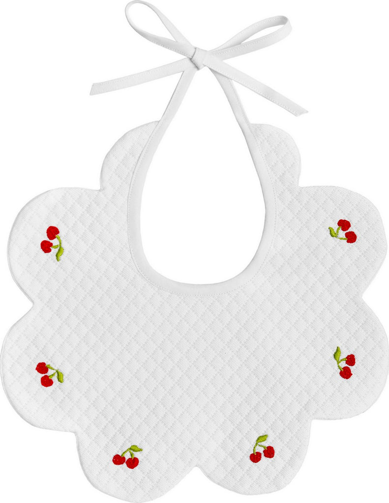 BABY BIB WITH RED CHERRY EMBROIDERY
