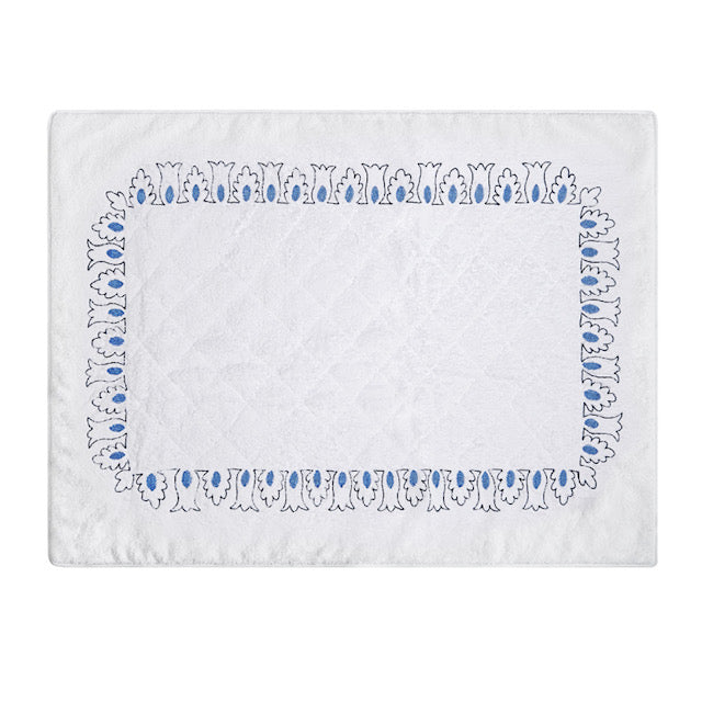 CLASSIC FLOWER AND QUILTED DIAMOND TERRY CLOTH BATH MAT - BLUE / NAVY