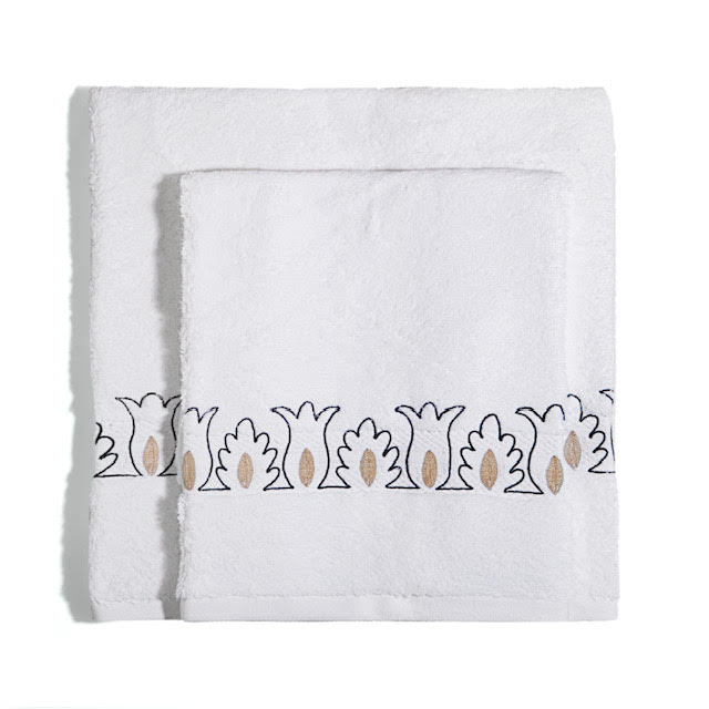 CUSTOM CLASSIC FLOWER TERRY BATH AND HAND TOWEL SET - BLACK & BEIGE