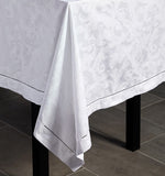 Acanthus leaves are jacquard-woven onto fine, long-staple cotton for an elegant, all-over pattern. Available in bold and neutral colors, this tablecloth, napkin and placemat collection is perfect for any occasion.