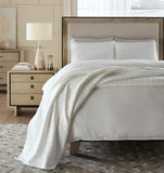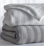 Bessini offers the lightweight warmth and versatility of a classic cotton blanket with the sophistication of a textured, tonal stripe. Made in the USA.