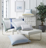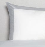 Casida is minimal and modern, creating an impact with its contrast color border in sateen appliqué along one side, and solid sateen on the reverse for multiple ways to style. Knife edge on seams create a clean, tailored silhouette.