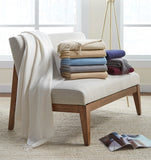 Dorsey, our pure cashmere throw, is finished with a fine downy watermark effect and a flounce of fringe.