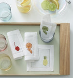 Our Frutta cocktail napkins are the finishing touch to any cocktail. Featuring four ambrosial fruits embroidered on fine white hemstitched linen, these napkins are a sweet complement to whatever you are serving.