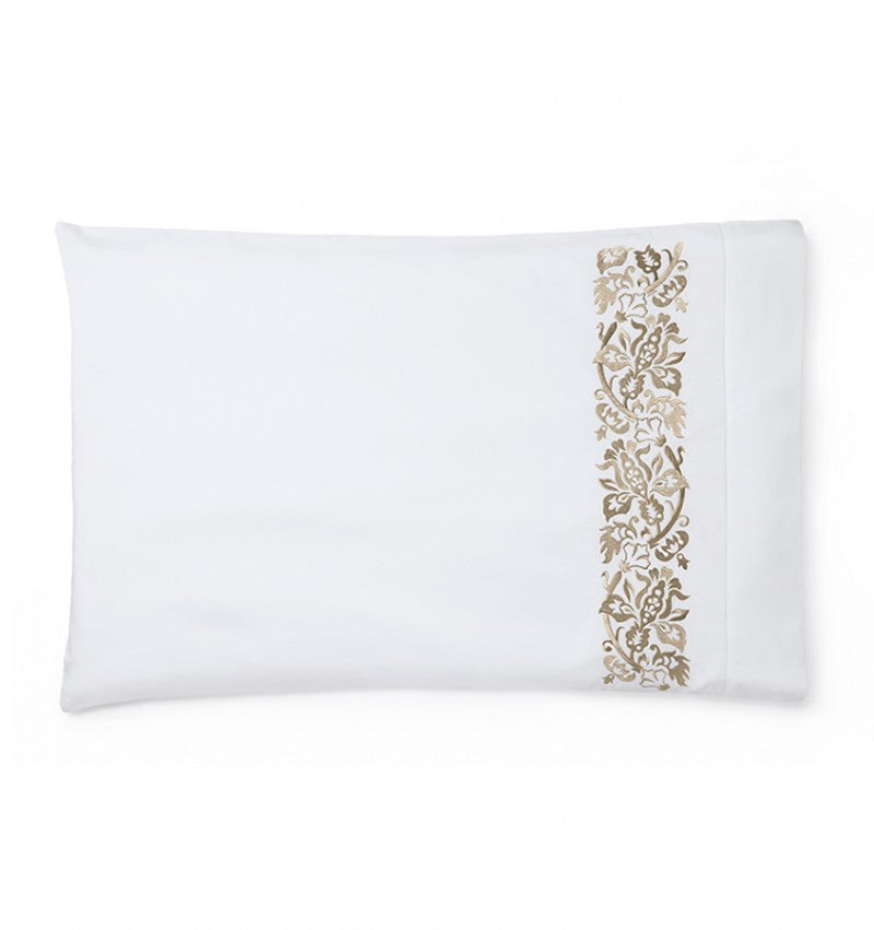 Inspired by Art Nouveau, plumes of exquisite stitching frame our soft, Italian-woven, extra-long-staple cotton percale. Tonal embroidery creates a rich, three-dimensional border accent to this luxury bed sheet collection.