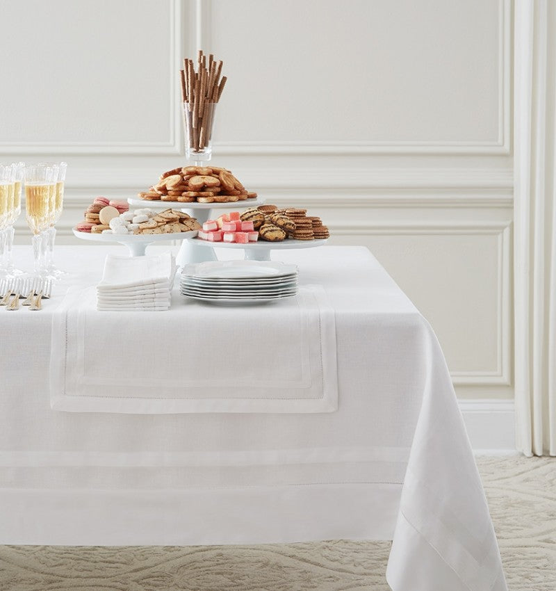 Tipton starts with our beloved Festival linen as a base, with an added white sateen applique border, creating an interplay of textures and lines. Appealing to both hand and eye, Tipton is an elegant classic.