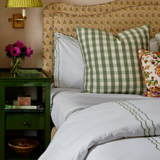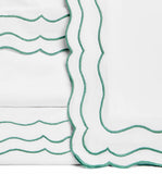 The 3 rows of the quintessential scallops. 460 white percale sheeting.