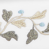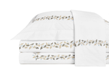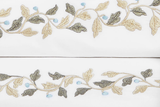 DS Linens exclusive design of leaves and small berries made to your specifications in any thread color you desire on the most luxurious cottons. Please call us to design yours at 310-741-1958.