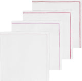 8 White linen napkins with precious pinks design all around the napkin. Hemstitch finish. 20 in x 20 in.