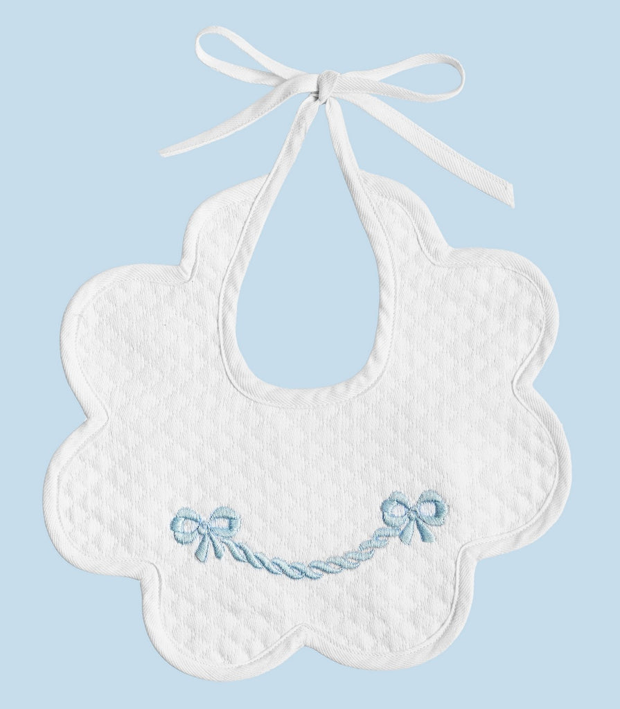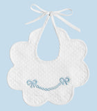 BABY BIB SCALLOPED WITH LIGHT BLUE BOW EMBROIDERY