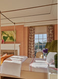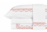 Our Classic Flower design is one of our DSLinens clients favorite. Expertly embroidered on our softest cotton percale. 460 thread count white percale with coral and orange thread
