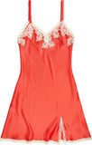 Italian Coral Silk Charmeuse Slip with Ivory Lace - Wrap over design