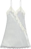 Italian Pearl Grey Silk Charmeuse Slip with Ivory Lace - Wrap over design