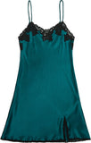 Italian Hunter Green Silk Charmeuse Slip with Black Lace