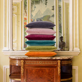 The brand new family of cotton velour cushions . An ultra -matte velour of high quality. A tone -on-tone piped finish adorns the contour of cushions .